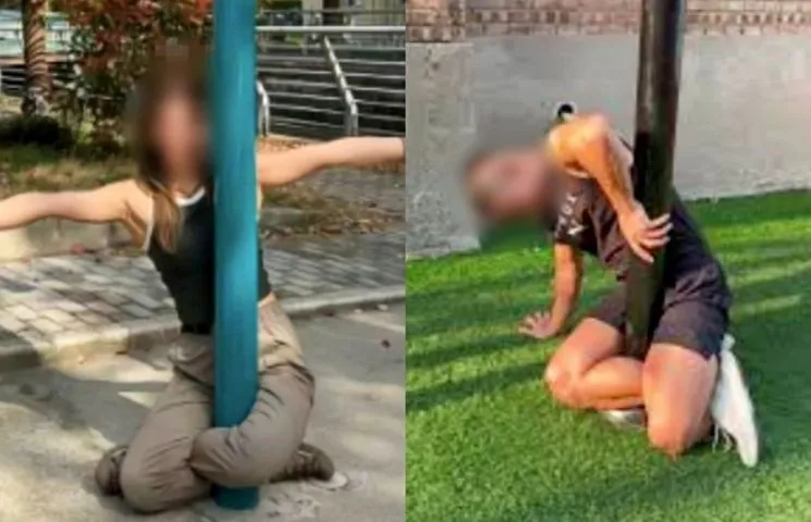 중국에서 가로등 기둥에 두 다리를 감고 빠져나오는 이른바 ‘가로등 챌린지’가 번지고 있다. 참가자들은 “쉬워 보인다”며 따라 하지만, 실제로는 다리를 풀지 못해 가족과 행인, 배달기사, 경찰의 도움까지 받고 있다.