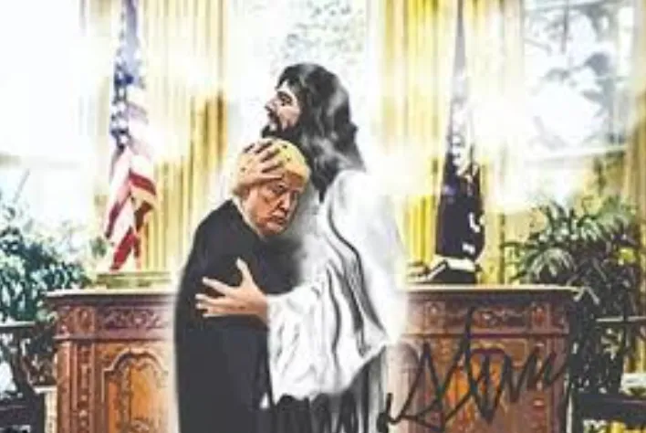 SNS에는 집무실에 앉아 있는 트럼프 대통령의 뒤에 선 예수가 두 손을 어깨에 올리고 있는 합성 이미지가 빠르게 확산하고 있다. 지지자들은 “악한 세력이 그를 매일 공격하고 있지만 우리가 할 수 있는 일은 그를 위해 기도하는 것”이라며 맹목적 지지를 보내고 있다.