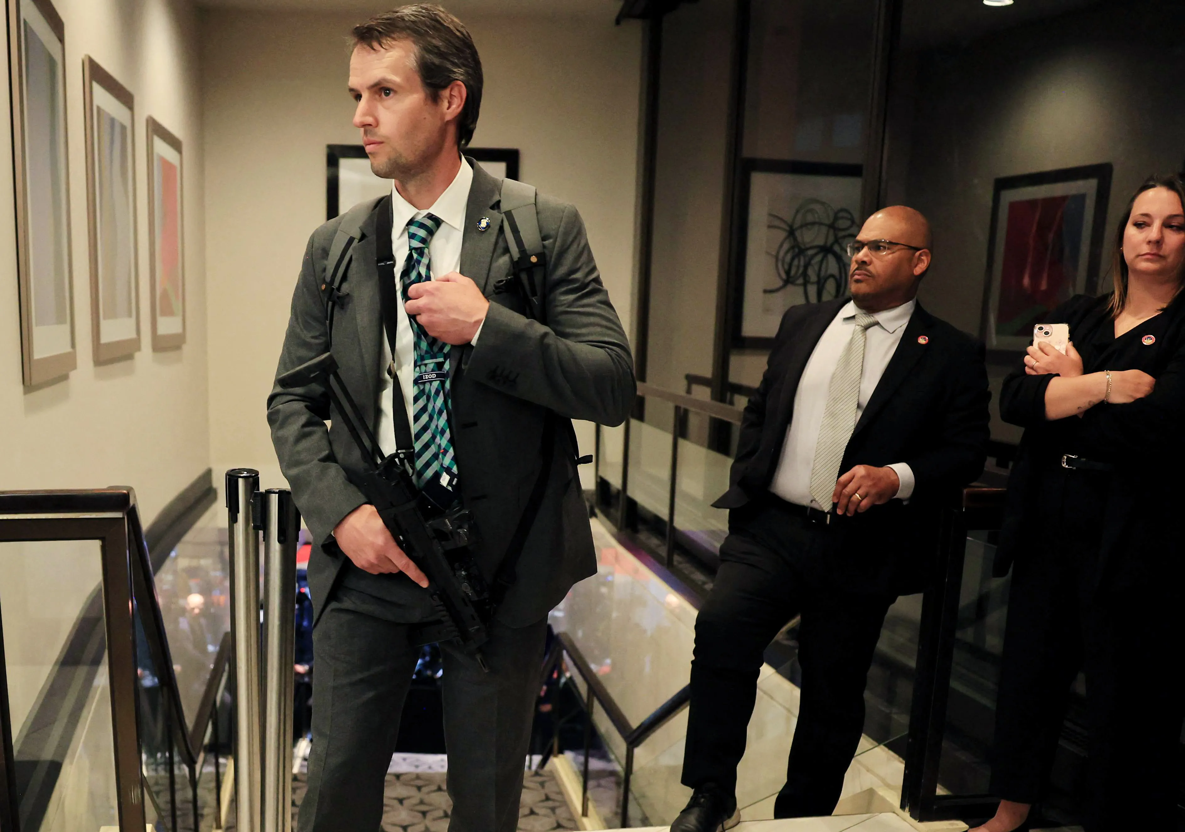 온라인에서 가장 눈길을 끈 장면은 한 사복 요원의 대응이었다. 그는 혼란 속에서 배낭을 열고 짧은 총기를 꺼내 들었다. 워존은 사진 분석 결과 해당 무기가 H&K MP7로 보인다고 전했다.