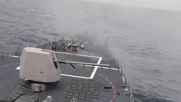 미사일과 드론이 현대 해전을 지배하는 시대에도 군함의 함포는 사라지지 않았다. 미 해군 알레이버크급 구축함이 이란 선박을 차단하는 과정에서 127㎜ 함포로 엔진룸을 겨냥한 사실이 군사전문매체들 사이에서 다시 주목받고 있다. 수백만 달러짜리 미사일을 쓰는 대신 함포탄으로 선박의 추진력만 제거한 사례였기 때문이다.