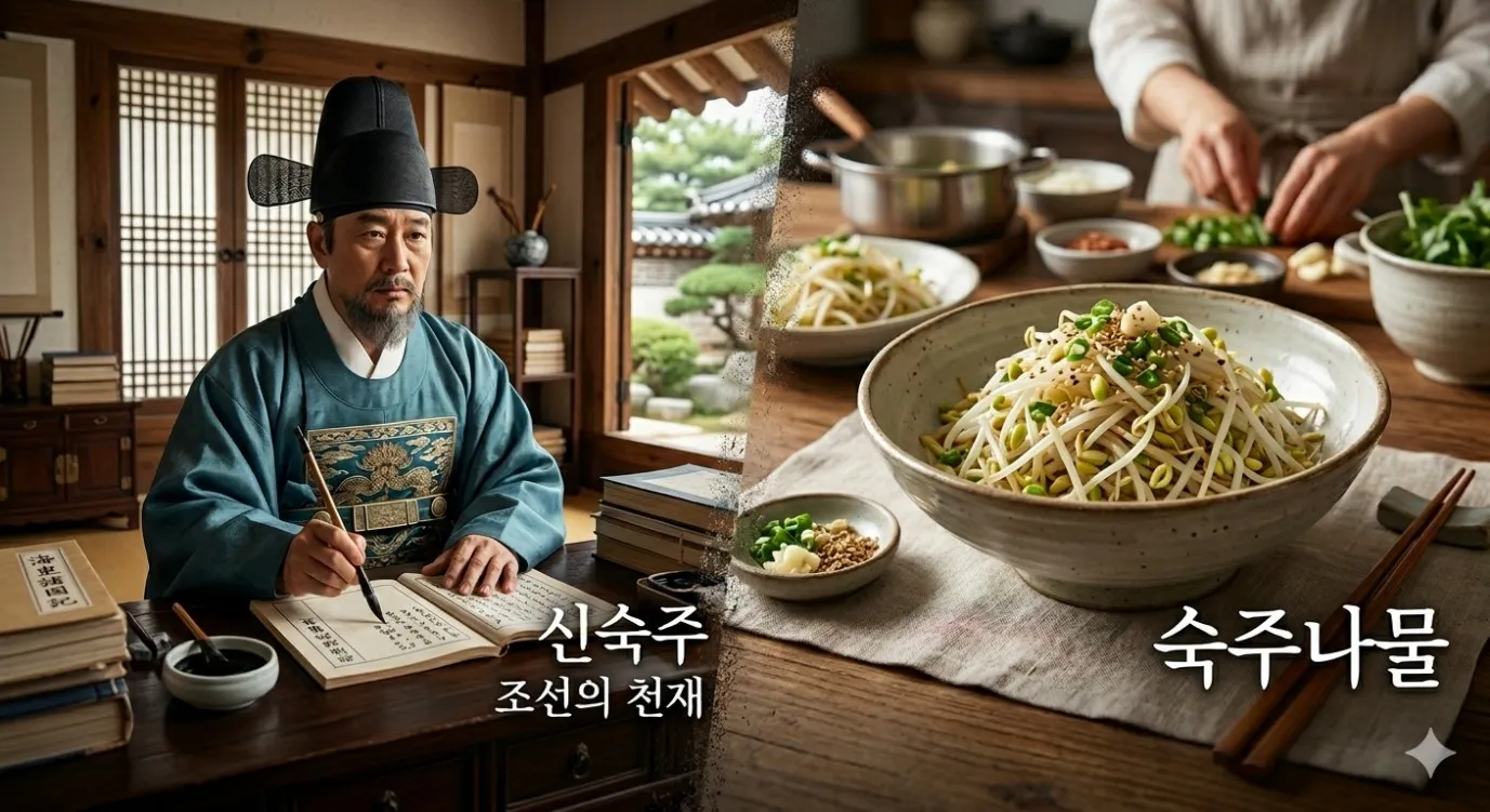 조선시대 문헌 어디에도 이 나물을 ‘숙주나물’이라 부른 기록은 존재하지 않는다. 신숙주와 나물을 연결한 기록이 처음 등장한 것은 놀랍게도 일제강점기인 1924년, 이용기가 편찬한 요리서 『조선무쌍신식요리제법』이다.